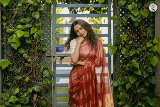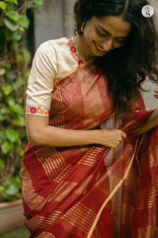 Mushru Varigal is Sondham's First Cotton Edit. This saree has been inspired by a swatch from the Forbes Watson archives. The border pattern is a "Mushroo" design which we have tried to recreate. We wanted this saree to be versatile to be able to suit many and also to have many mix and match options.
