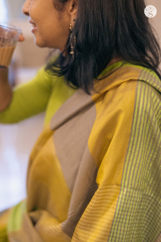 Maheshwari Silk Cotton -Black with zari horizontal lines with Floral border